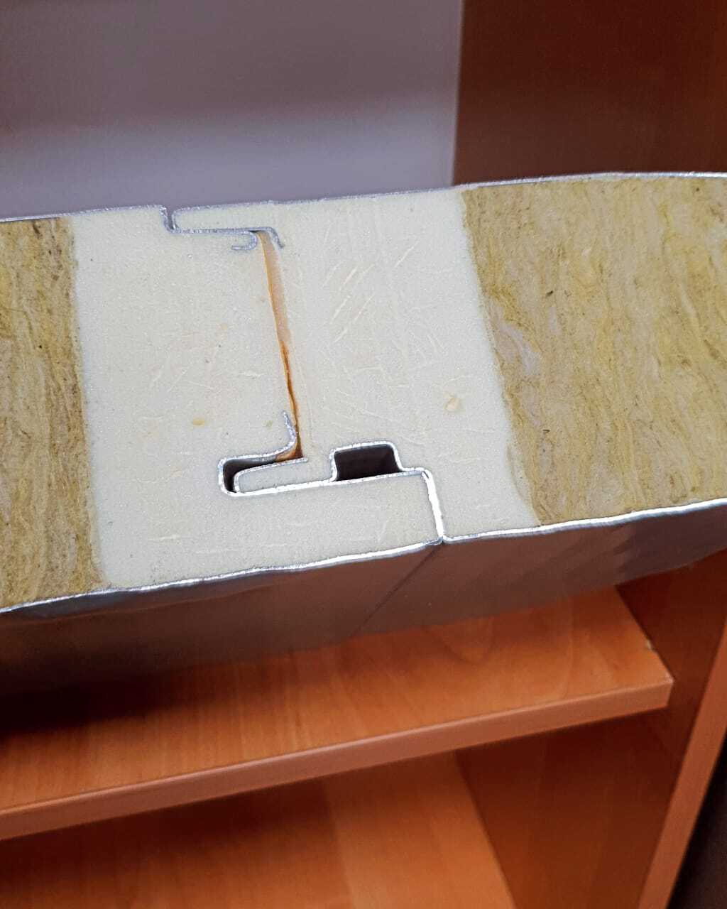 Стеновые сэндвич панели с минватой, вид замка: Secret fix, соединение замка скрытное с наполнителем RIP для жесткости структуры сэндвич панели, доставка до объекта